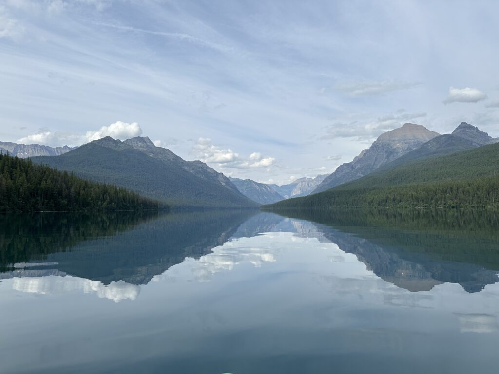 We went to North Fork in Glacier, during our summer visit, in order to paddle on Bowman Lake. The road to access the North Fork section of the park is gravel and dirt for some of the way and once you get into the North Fork area, you will travel on a dirt road to get to Bowman Lake parking. It wasn’t really a rough road, it just didn’t have a paved surface. Parking can be limited during the 7am-3pm time frame. Paddling on Bowman Lake was really nice. There was beautiful scenery on all sides and the lake was absolutely clear, with a reflection so perfect that without knowing any better you could mistake where the water actually started.