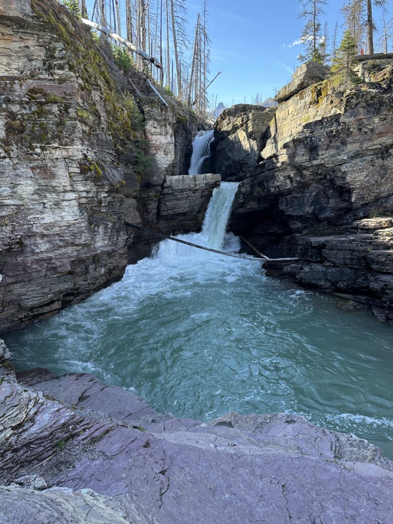Closer to St. Mary Lake are two pretty waterfalls that you can access by trail, St. Mary Falls and Virginia Falls trail. St. Mary Falls is the closest falls to the trailhead. The parking for this trail is limited and also can require some patience to find an open spot. We actually walked this trail in the fall time during off season, so parking was not too difficult to get, but just know that parking could be limited and you may need to take the shuttle there and back.